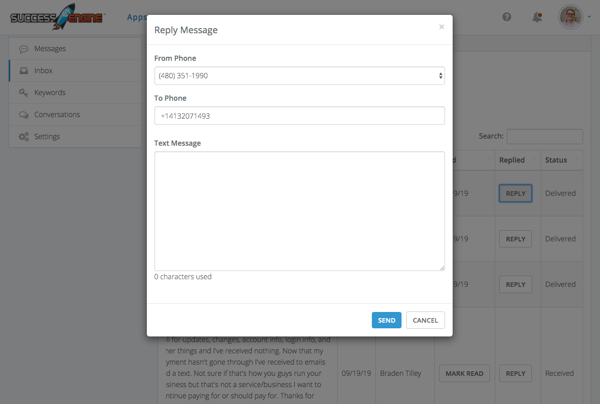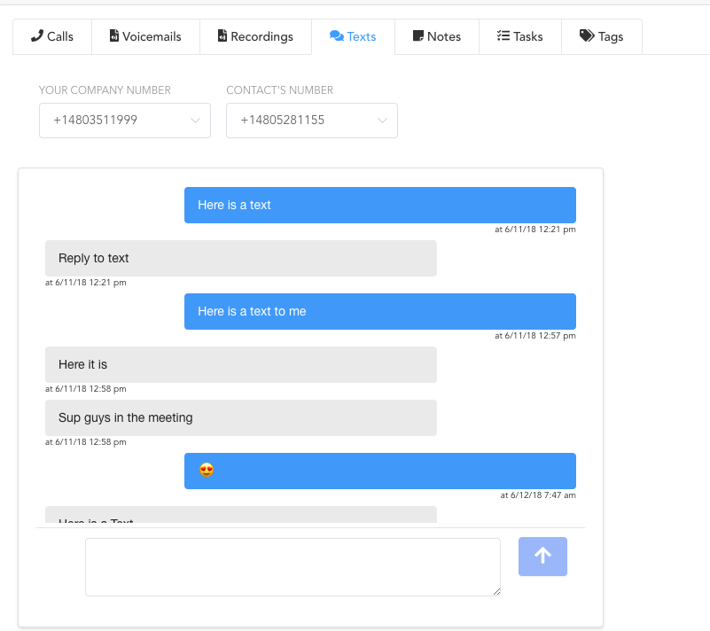 Automated text messages, automation for receiving text messages, and manual ability to view and send messages.